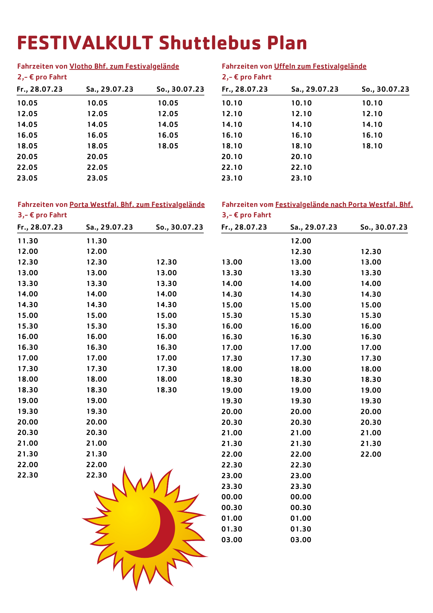 Fahrpläne für unseren Festivalshuttlebus hängen an verschiedenen Stellen u.a. an dem Infostand aus.